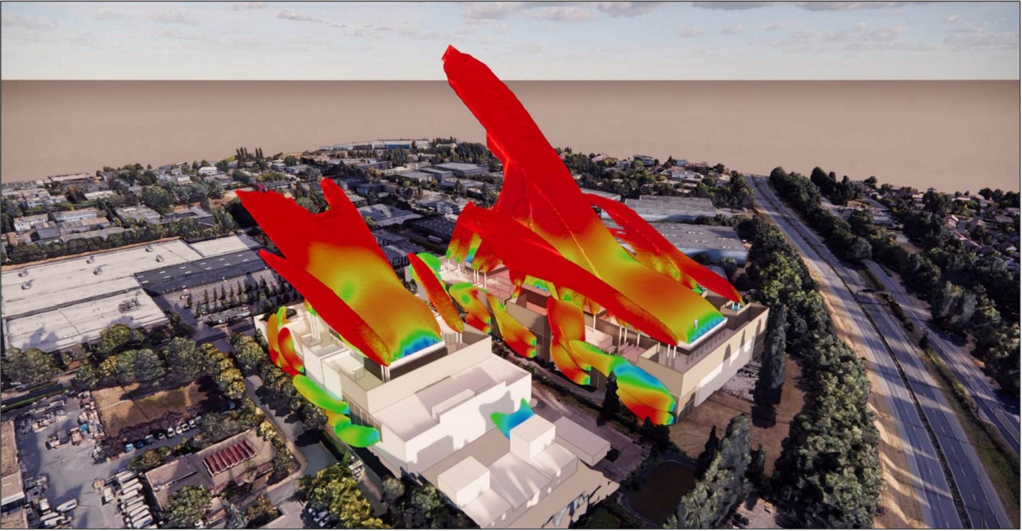 Digital anticipation plays a crucial role in theoperational efficiency of these datacenters. The ultra-detailed digital twin models flows and virtually manages critical operations, reducing the risk of thermal malfunctions linked to theexternal environment. This modeling includesanalysis of exhaust stacks, smoke dispersion andbuilding impact.