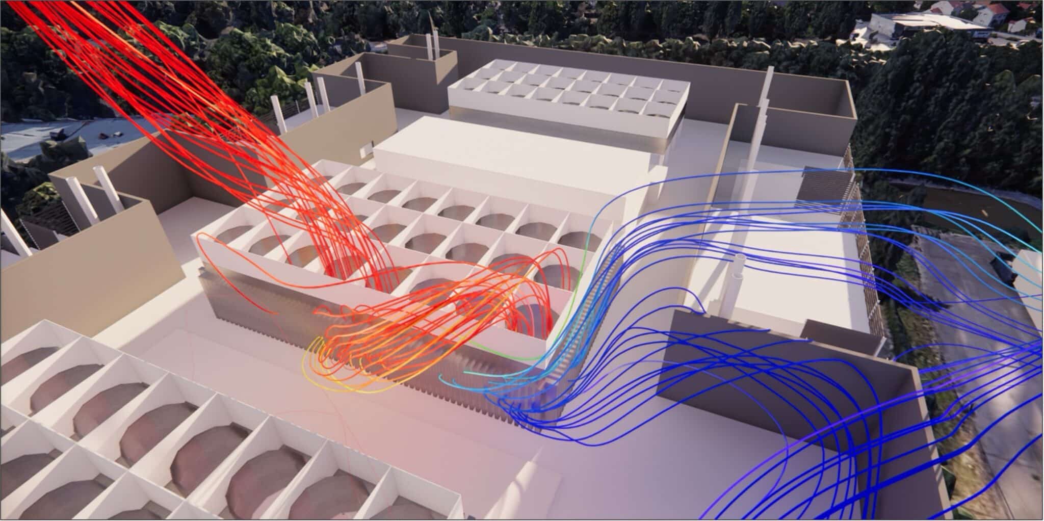 Their location on the roof and their sizing must be carefully studied to avoid any recirculation of hot air, likely to degrade thermal performance. CFD simulations can thus be used to check that the air coolers are operating optimally, whatever the external conditions and wind configurations.