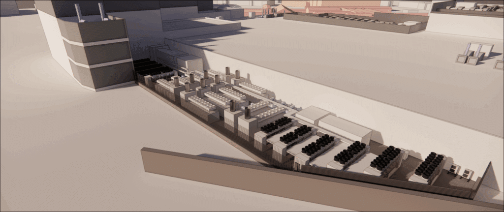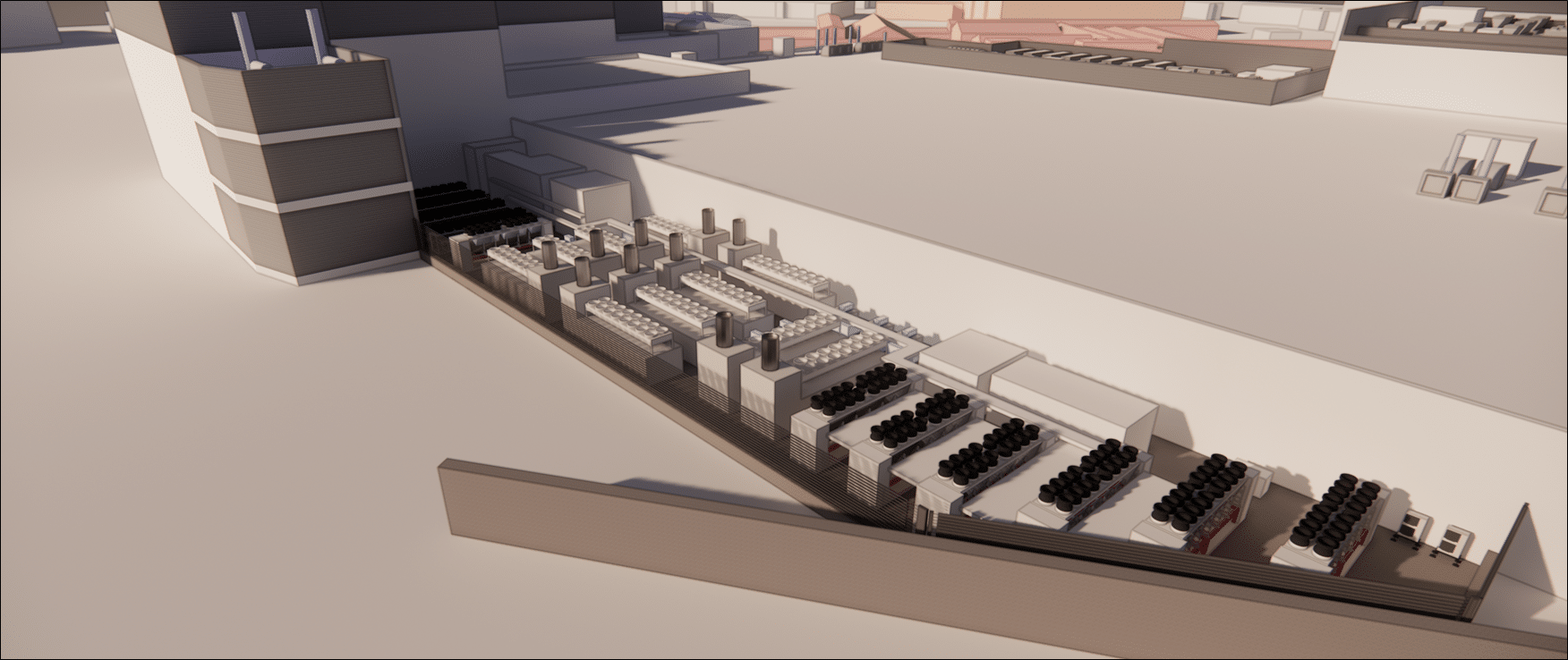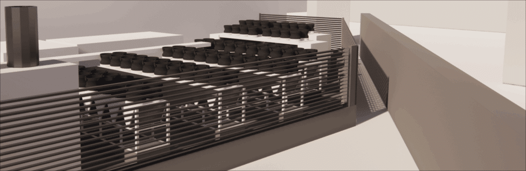 The model developed by EOLIOS is faithfully based on the architecture surveyed during the audit, and incorporates the specific features of theground layout – partial cowlings, nozzles, orientation of the louvers on the outside of the GE, useful heights, center distances, screens and peripheral obstacles. This translation of the real site into a 3D model for CFD is accompanied by CAD preparation and meshing, with refinements at air intakes, discharges and enclosure zones, as well as boundary condition settings consistent with the local context( siteroughness, representative wind incidences,thermal emission levels and operating regimes). The aim is not to produce a theoretical twin, but a physically credible model capable of reproducing theflow and recirculation mechanisms that determine inlet air quality.